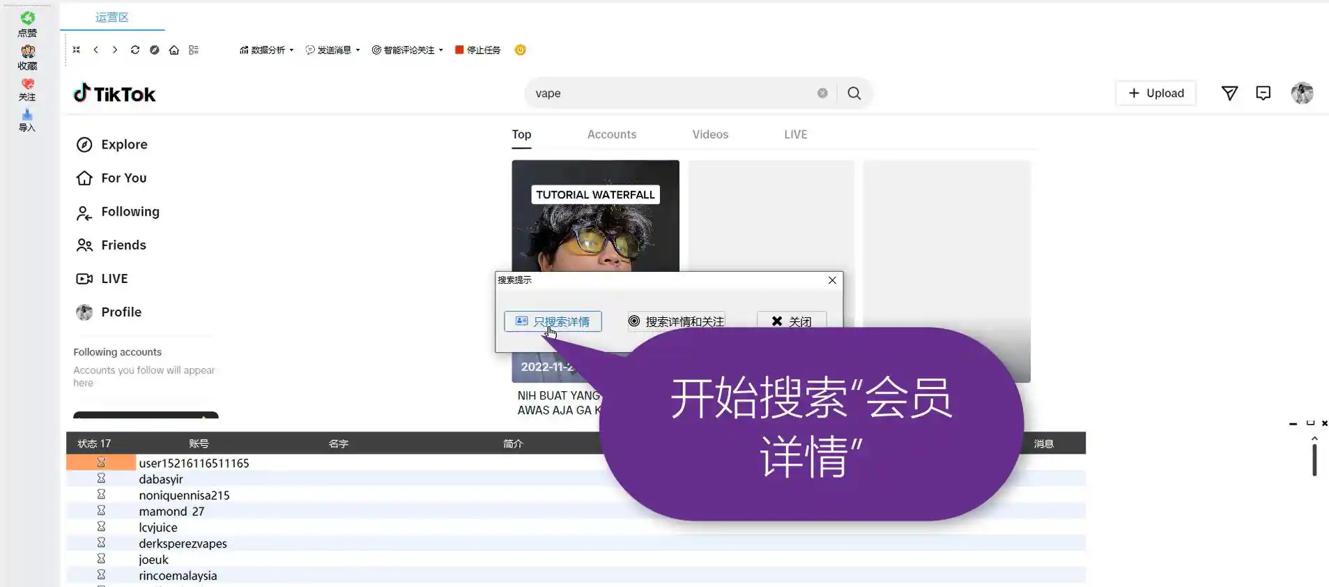 | 批量关注 | 批量关注会员,吸粉; |